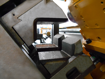 2)簡約設(shè)計夾鉗布局: 鋸片利用率高,切Φ76的管,直徑Φ315鋸片可以切穿,相比同行,需要Φ400鋸片;降低鋸片使用成本,降低齒輪箱的磨損。